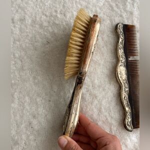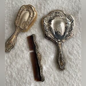 Vintage Antique Vanity Mirror Brush and Comb Set in Art Deco Silver Design