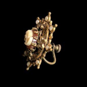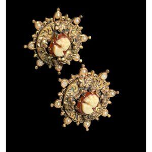 Vintage Antique Victorian Cameo Screw Back Earrings Seed Pearls Estate