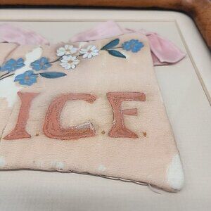This vintage antique wall hanging is a beautiful addition to any room. The wooden frame measures 8x10" and showcases a hand painted pink silk bag design. The piece is perfect for art and advertising enthusiasts, and features a unique production technique of hand painting on silk. It comes framed and ready to display, making it an easy and elegant way to add some character to your home decor.