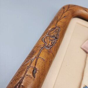 Vintage Antique Wall Hanging Wooden Framed 8x10" Hand Painted Pink Silk Bag