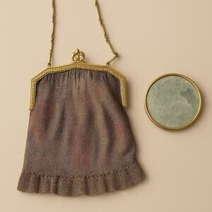 Vintage Antique Whiting Davis Mesh Purse Bag Handbag Dresden Mesh 4” X 5”