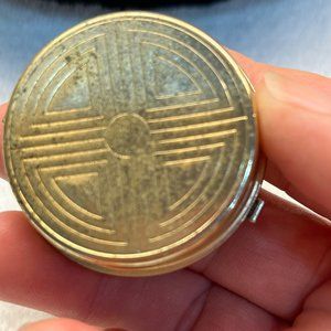 Vintage antique brass round pill box raised poodle design with stones claps closure
