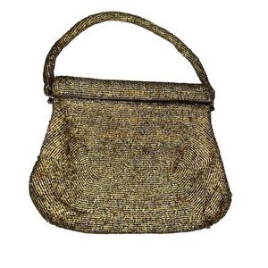 Vintage Antique gold beaded mini purse bag