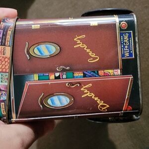 This pre owned adorable tin bank has colors so vibrant it’s hard to believe it’s vintage!