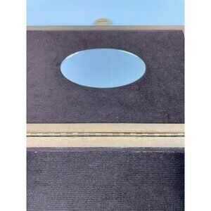 This unique vintage box purse showcases the enchanting artistry of Anton Pieck, featuring a New Orleans street scene. The wooden purse is adorned with charming detailed illustrations, encapsulating a nostalgic era. Its lucite handle and sturdy brass clasp add to its vintage allure, making it a distinctive collectible piece.