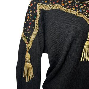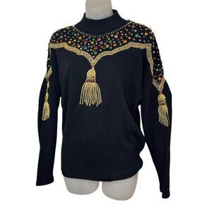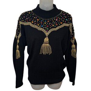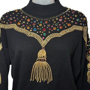 Vintage Antonella Preve NY Gold Tassels & 80's Bling Sweater size S runs big M