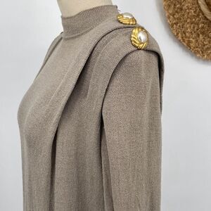 Vintage Antonella Preve New York M Santana Knit Midi Dress Embellished Beige 80s