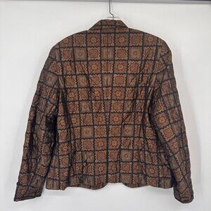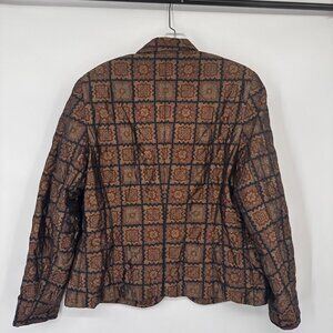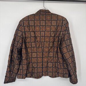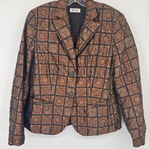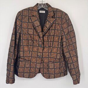 Vintage Antonette Franz Haushofer Womens Silk Blazer Jacket Brown Geometric Patt