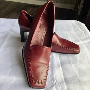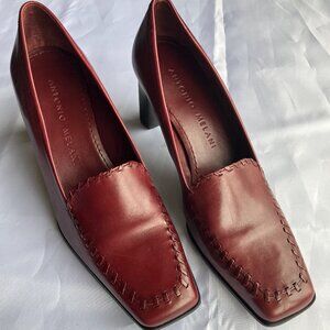 Vintage Antonio Melani Burgundy Leather Square Toe Pumps