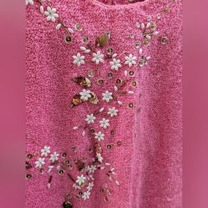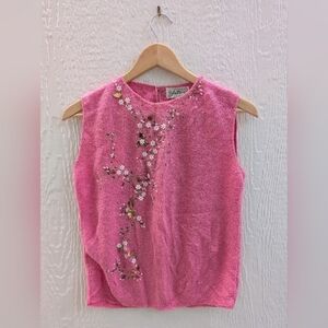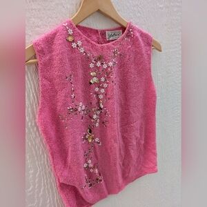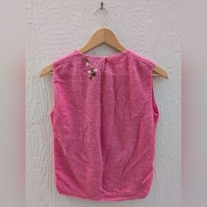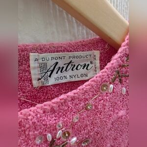 Vintage Antron DuPont Nylon Pink Beaded Sleeveless Tank Top Size Small/Medium