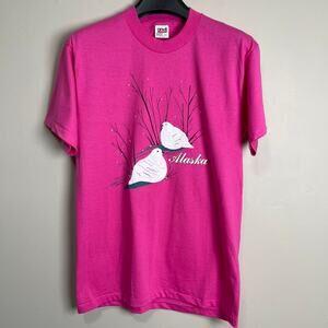 Vintage Anvil 1988 Alaska Puff Print Crew Neck Cotton Graphic Puff Print Tee L