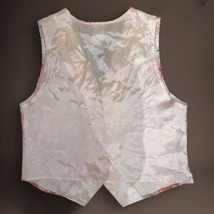 Vintage Anxiety Cream & Salmon Striped Dress Vest. Victorian brocade overlays the striping, back is a thin cream acetate backing. 60% cotton & 40% polyester front.