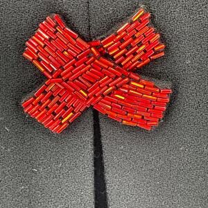 Vintage Anya Black Wool Lined Back Vent Red Beaded Bow Pencil Skirt