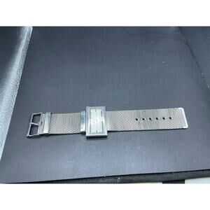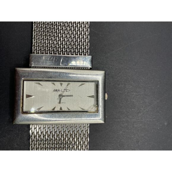 Vintage Anya Ltd. Watch Silver Tone G2249 Rectangular Face Mesh Strap