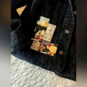 This vintage apache west black denim jacket features a route 66, western theme. Its in great preowned condition with a ton of life left. Its a solid denim jacket made with quality denim and the cut is super cute.