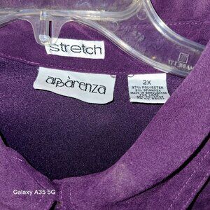 Vintage Aparenza Stretch Button-Up Purple Blouse 2X Polyester & Spandex Womens L