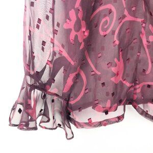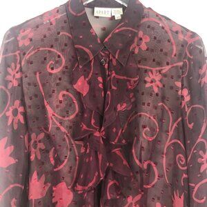 Vintage Apart Impressions Blouse Womens 10 Wine Ruffled Floral Print Sheer Silk