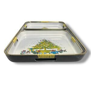 Vintage Apex Lacquer Ware Christmas Tree Tray Set of 3 Sizes Japan Nesting