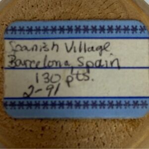 Unfinished (not stained) wooden mortar and pestle set. Sticker/note with this set says “Spanish Village Barcelona Spain 2/91.
