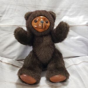 Vintage Applause Wood Face Bear Posable Stuffed Animal 12" 1985 Robert Raikes