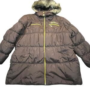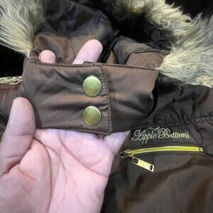 Vintage Apple Bottom Womens 2xl Puffer Brown Jacket Fur Hoodie Logo Gold Y2K