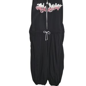 Vintage Apple Bottoms Jumpsuit 2X Black Graffiti Spellout Hooded Balloon B-Girl