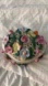 Vintage Applied Flowers Reticulated Basket Diamond Trinket Dish. Estate find and signed China. From the 1970’s and in REALLY good condition. Gold plated lining. Honestly, so much detail and flowers and I don’t see any flaws! Just stunning….