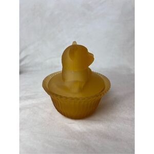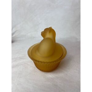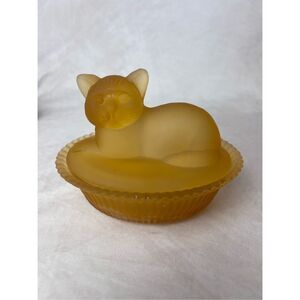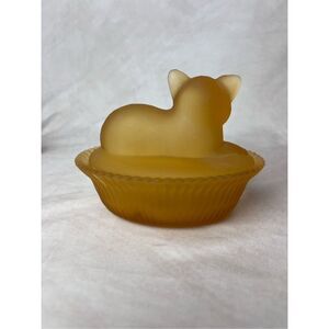 Vintage Apricot Satin Glass Cat on Basket Kemple Glass