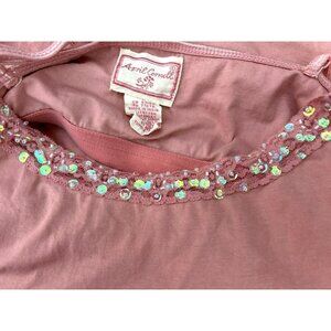 Vintage April Cornell Pink Beaded Tank Top Large Y2K 1990s Sequin Embellished