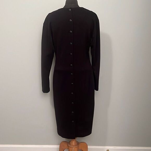 Vintage April Rain Women's Black Crew Neck Long Sleeve Cotton Blend Sheath Dress Large