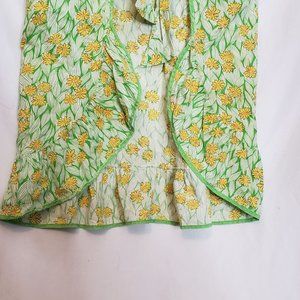 Vintage Apron Handmade Pullover Tie Waist Lime Green Yellow Daisy Print Pocket