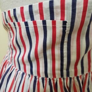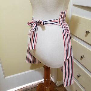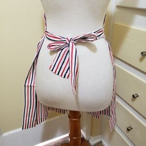 Vintage Apron Striped Red White & Blue w/ Cute Front Pocket Half Apron S…