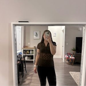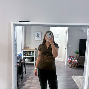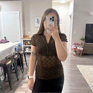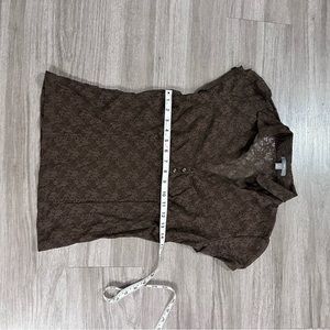 Vintage Apt 9 Brown Lace Sheer Short Sleeve V-Neck Polo Blouse