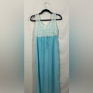 Vintage Aqua Blue Lace Bodice Nightgown Women’s Sleepwear 60s 70s Made in USA M
