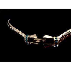 Vintage Aqua Rhinestone Choker on Heavy Silver-Tone Serpentine Omega Chain 1940s