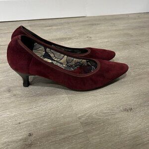 Vintage Aquatalia Burgundy Maroon Suede Classic Point Toe Heels Women’s Size 8