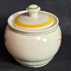 Vintage Arabia Sugar Bowl w Lid Finland Vintage Orange Poppy Red Yellow Suomi 3"