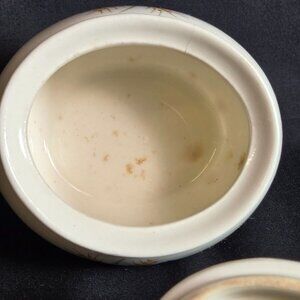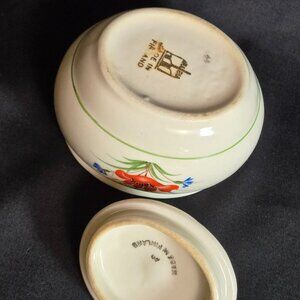 CONDITION: Good vintage condition. I found a small crack on the rim (see photos). Minor scuffing on the foot. The lid has a slightly "wonky fit" as it won't sit just perfectly on the rim. It's possible it was a replacement lid at some point in time. Some discoloration and minor stains inside the bowl, typical for vintage items. See all photos for details. Measurements in photos.
