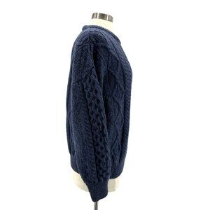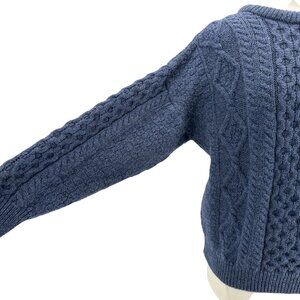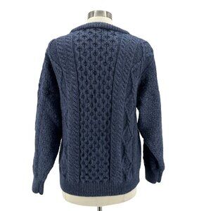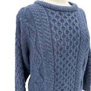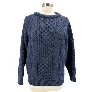 Vintage Aran Crafts Womens Large Sweater Wool Fisherman Knit Blue Ireland