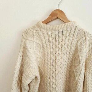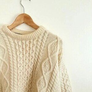 A beautiful warm vintage pure new wool cable knit chunky fishermans winter sweater unisex > read on>