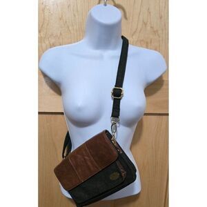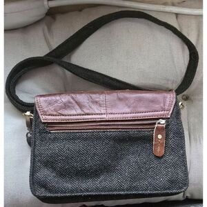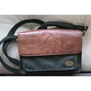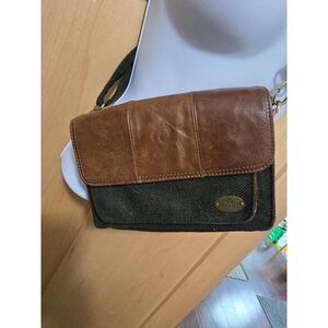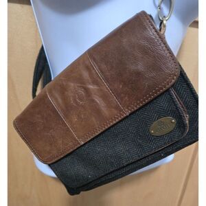 Vintage Aran Brown Leather & Wool Tweed Crossbody Bag Adjustable Strap old money
