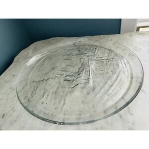 Vintage Arcoroc 13” Platter France Clear ‘Through The Woods’ Winter Sleigh Scene