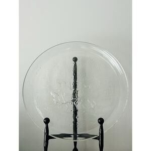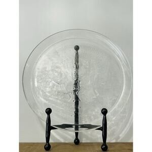 Vintage Arcoroc 13” Platter from France features a winter sleigh scene titled "Through The Woods." Made of clear glass, it has a round shape with a Victorian style, measuring 1” in height. This late 20th-century piece is a decorative plate perfect for Christmas and winter occasions.