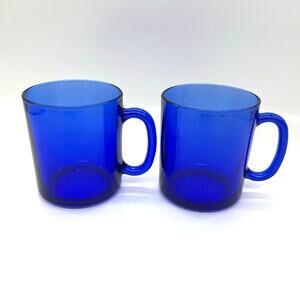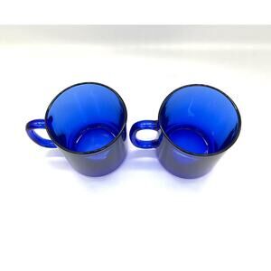 Vintage Arcoroc Cobalt Blue Set of 2 Glass Mugs Made in France