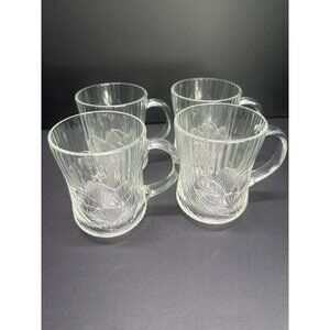 Vintage Arcoroc Coffee Tea Mugs Cups Glass Canterbury Crocus Floral - Set of 4