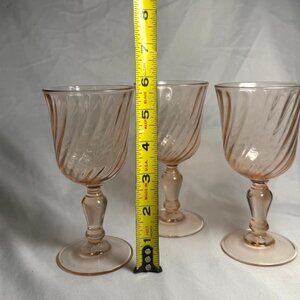Vintage Arcoroc France Rosaline Pink Swirl Wine Goblet Depression Glass Set of 3