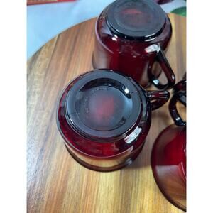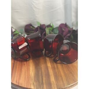 dd a touch of timeless elegance to your table with this set of 4 vintage Arcoroc France ruby red glass cups. Each cup boasts a rich, deep ruby red color that beautifully captures and reflects light, making them a standout addition to any glassware collection.