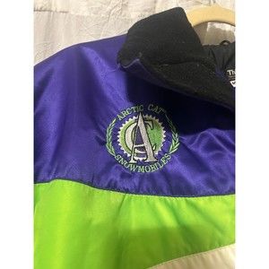 Step into the past with this vintage Arctic Cat racing jacket. Made from 100% nylon, this jacket boasts a zip closure and features a multicolor design of black, purple, and green. Perfect for winter sports and snowmobiling, this jacket is a must-have for any collector or fan of the brand. The jacket is women's medium in size and has a racing style that exudes vintage charm. Made in the United States, this jacket is a rare find that will surely stand out in any collection.