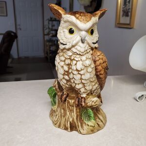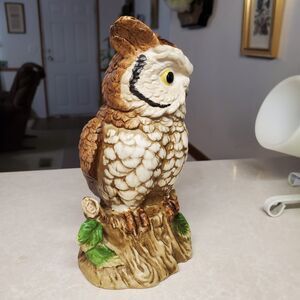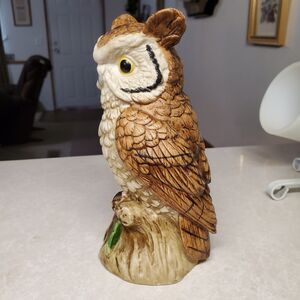 Vintage Ardco 6.5" Great Horned Owl Stump Porcelain Figurine