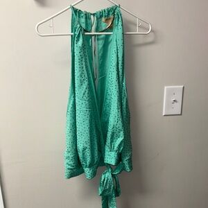 Vintage Chic teal wrap halter top with shimmering sequins. Ideal for evening wear. Worn once for a photo shoot. Top is more gorgeous in person. Very unique.